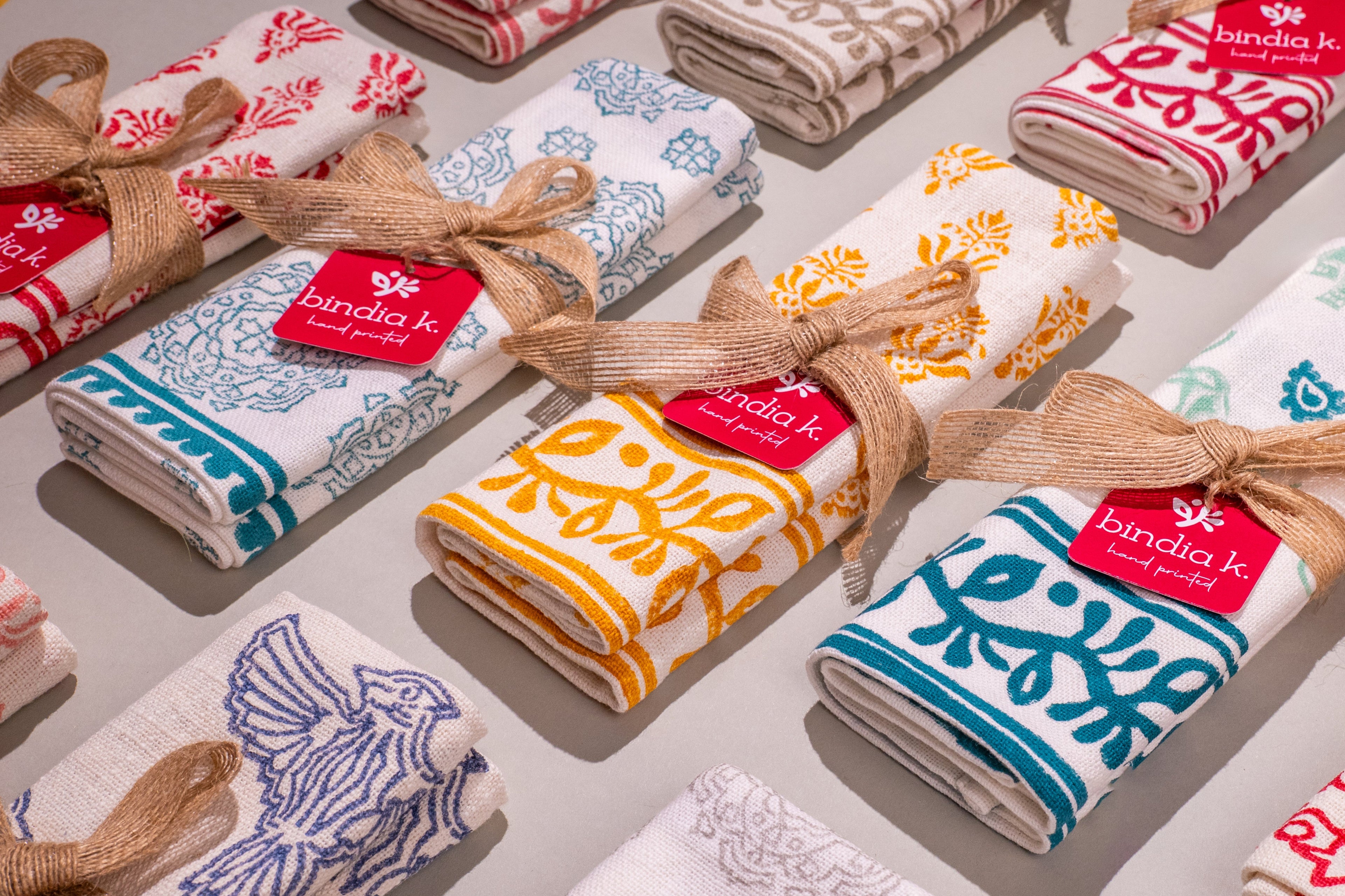 All of our tea towels are designed by us and hand block printed by talented artisans in India on beautifully textured cotton to create beautiful, everyday pieces that bring character and a touch of color to your home.