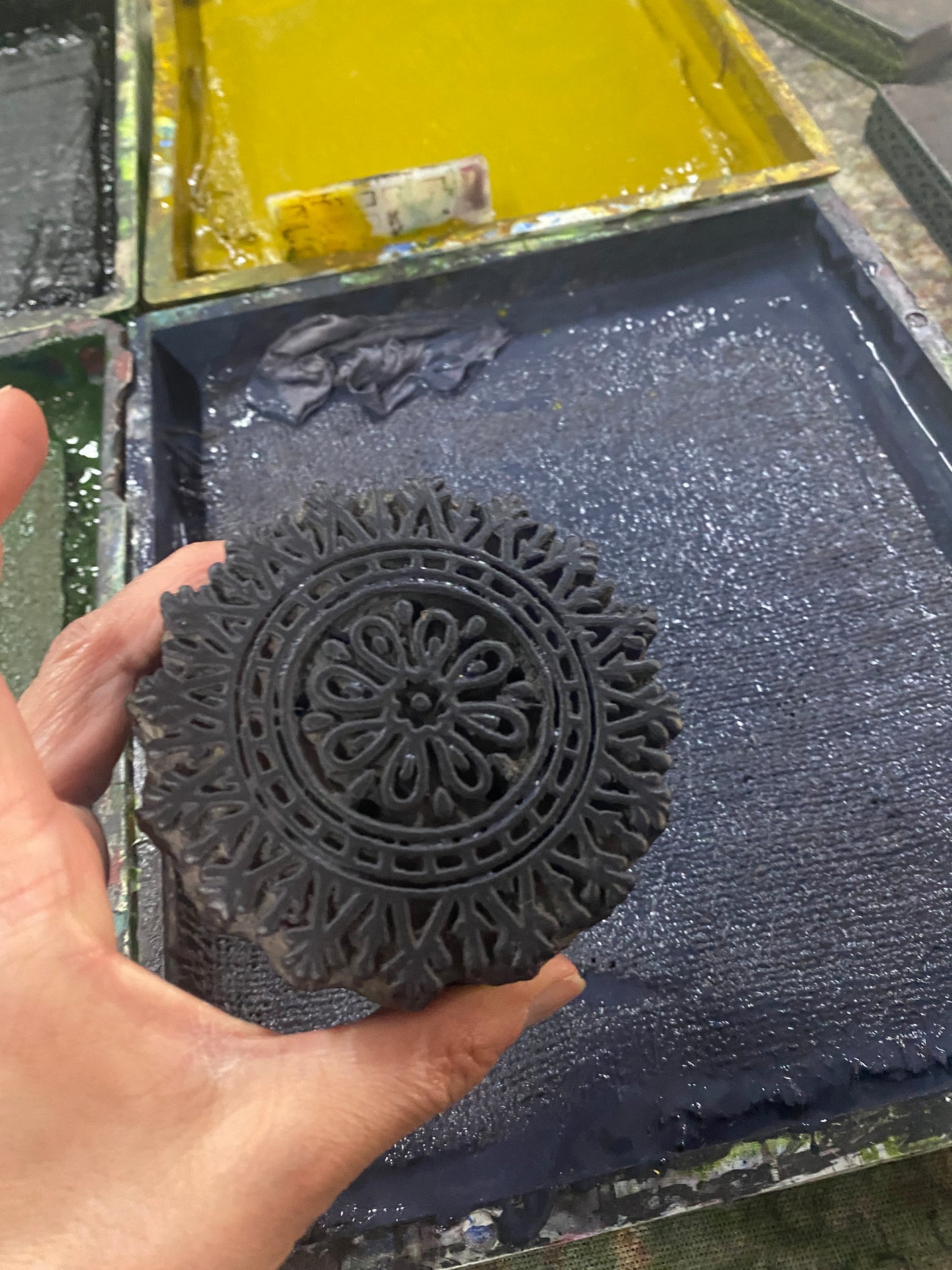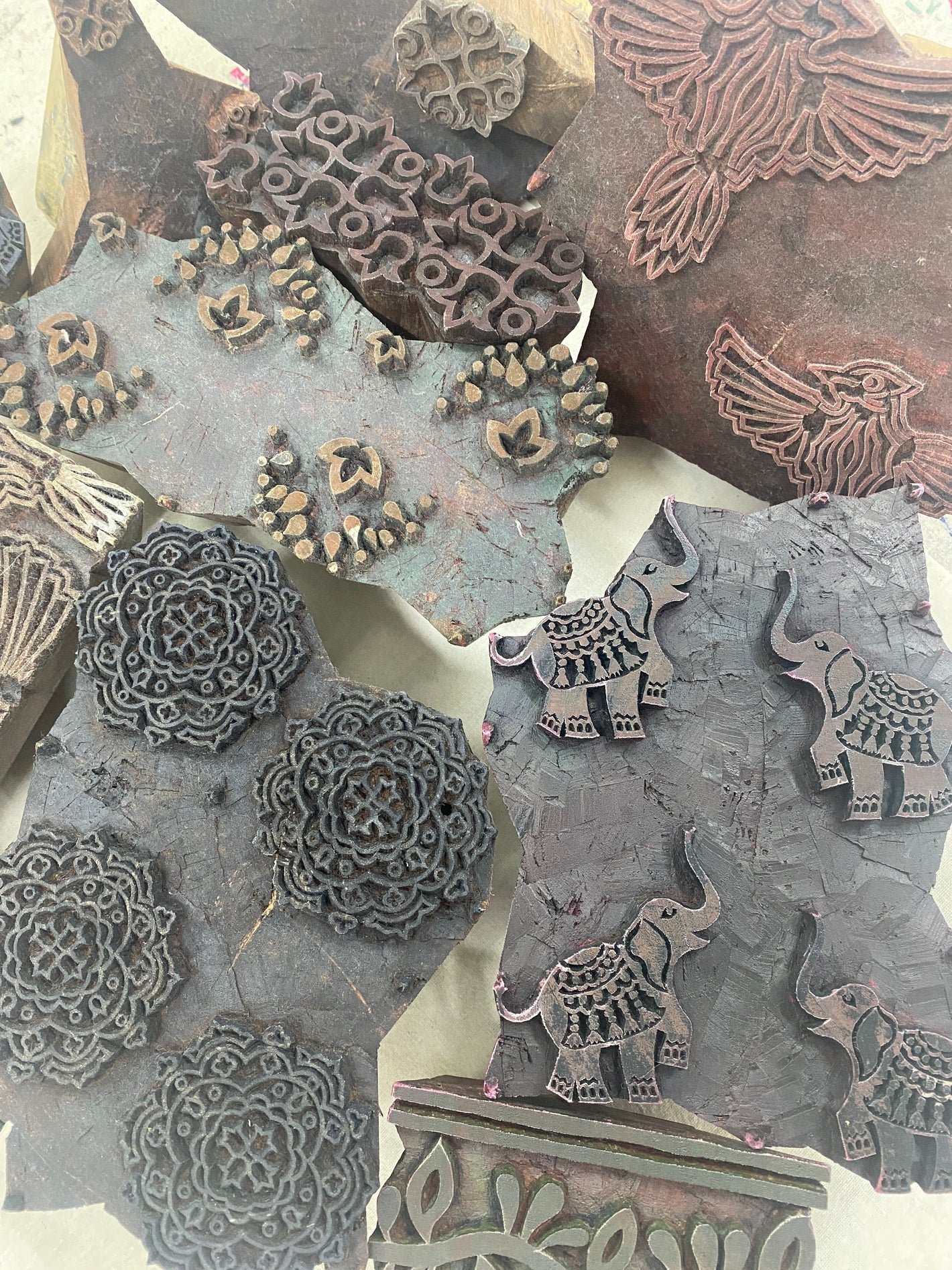 Hand block printing is a centuries-old craft in which skilled artisans carve intricate patterns into wooden blocks, dip them in dye, and carefully press them onto fabric block by block, color by color. It takes a steady hand and sharp eye to align each print with the last.