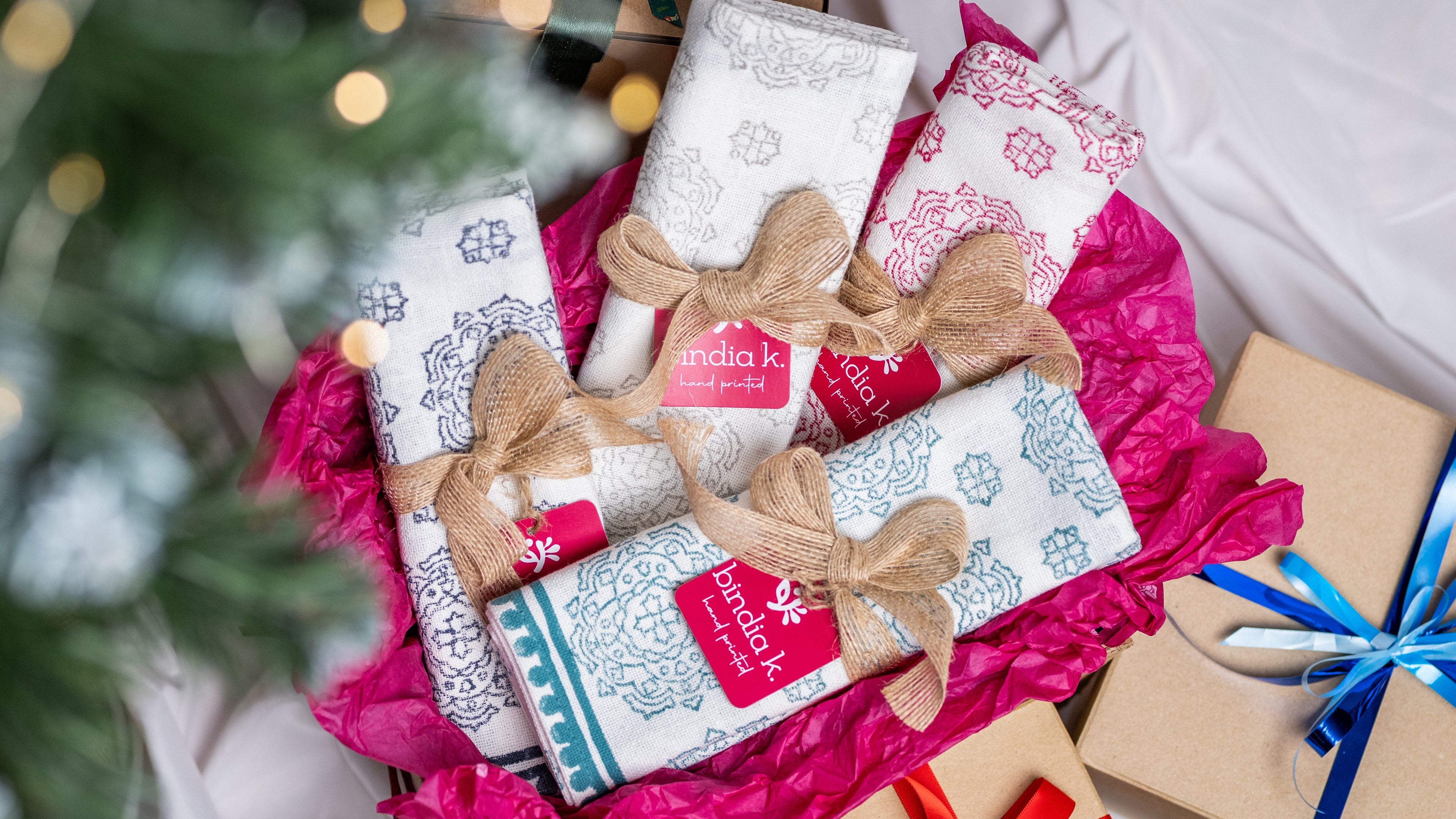 Hand Block Printed Tea Towels & Napkins