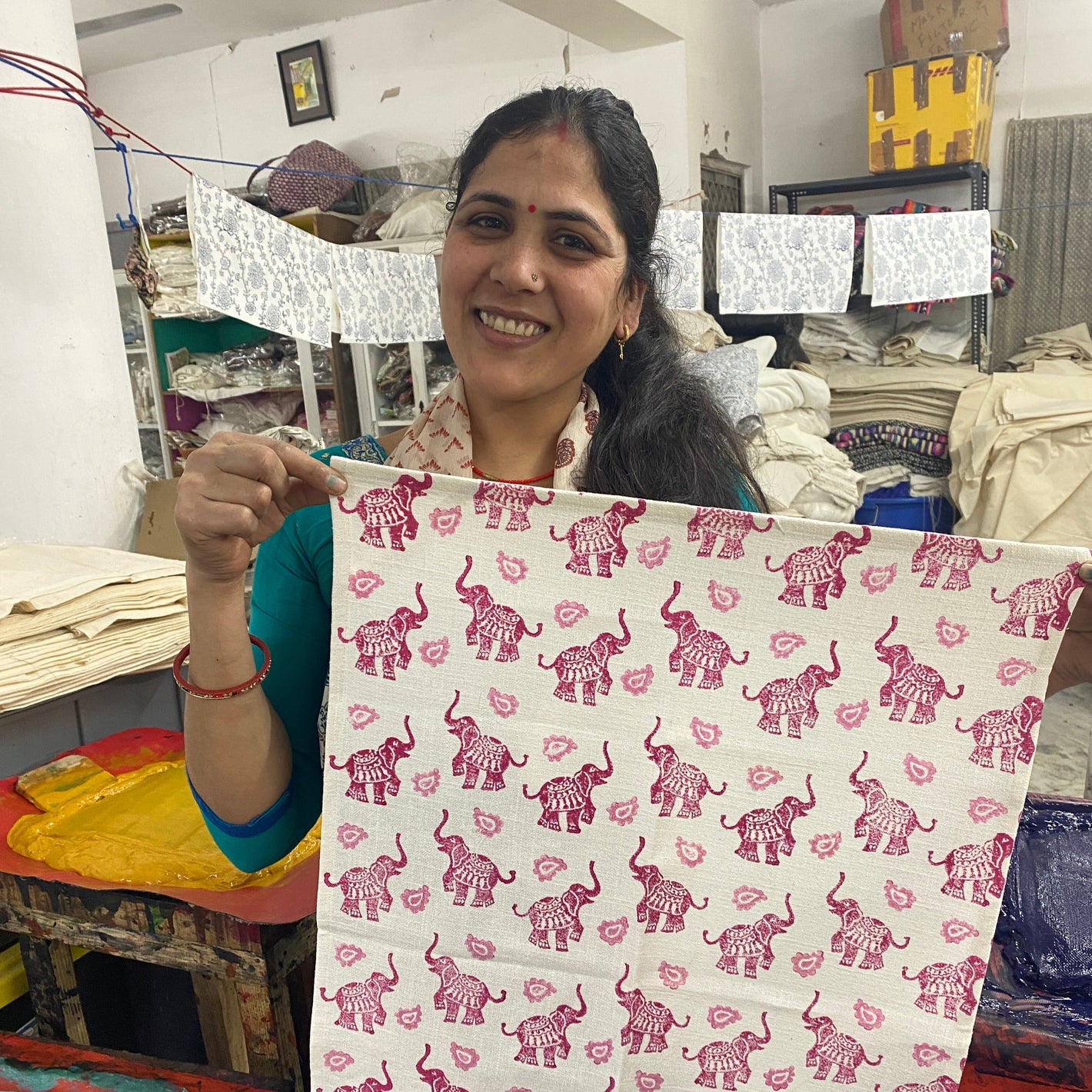 Hand block printing is a centuries-old craft in which skilled artisans carve intricate patterns into wooden blocks, dip them in dye, and carefully press them onto fabric block by block, color by color. It takes a steady hand and sharp eye to align each print with the last.